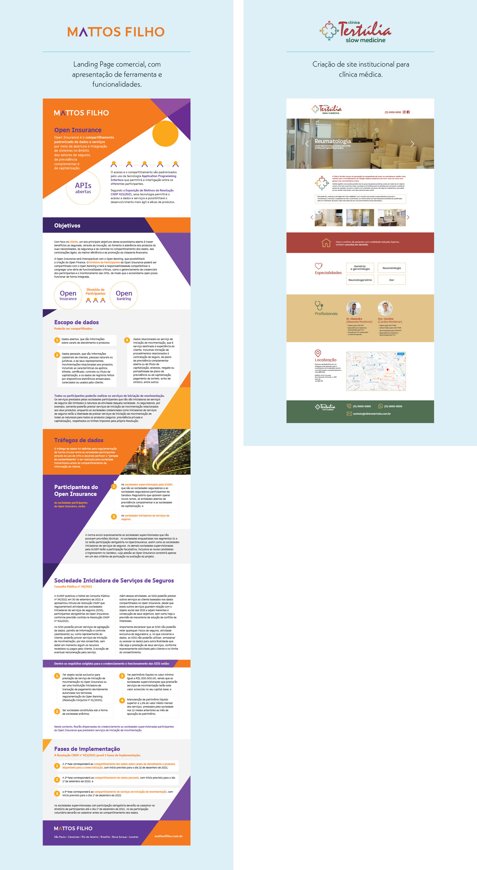 Design e desenvolvimento de páginas com foco na usabilidade, funcionalidade e visual para proporcionar uma experiência digital simples e eficaz.